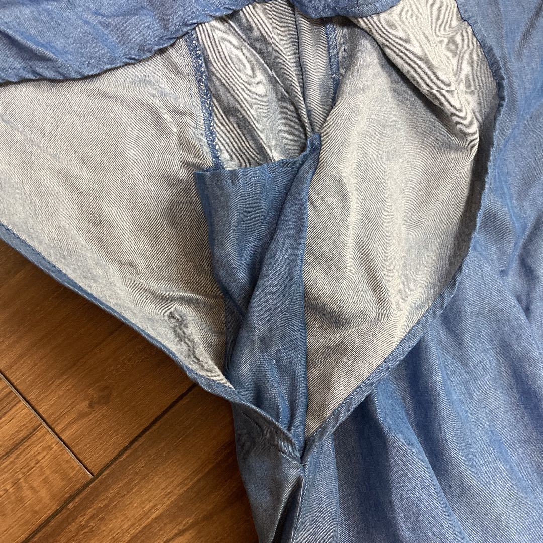数回着用のワンピースです。アーバンリサーチ 店舗で購入しました。デニムカラー、サラッとした生地でとても着やすいです。腕が程よく隠れ脇下があいてるのでとても涼しいですよ、インナーが見えにくいデザインです。
