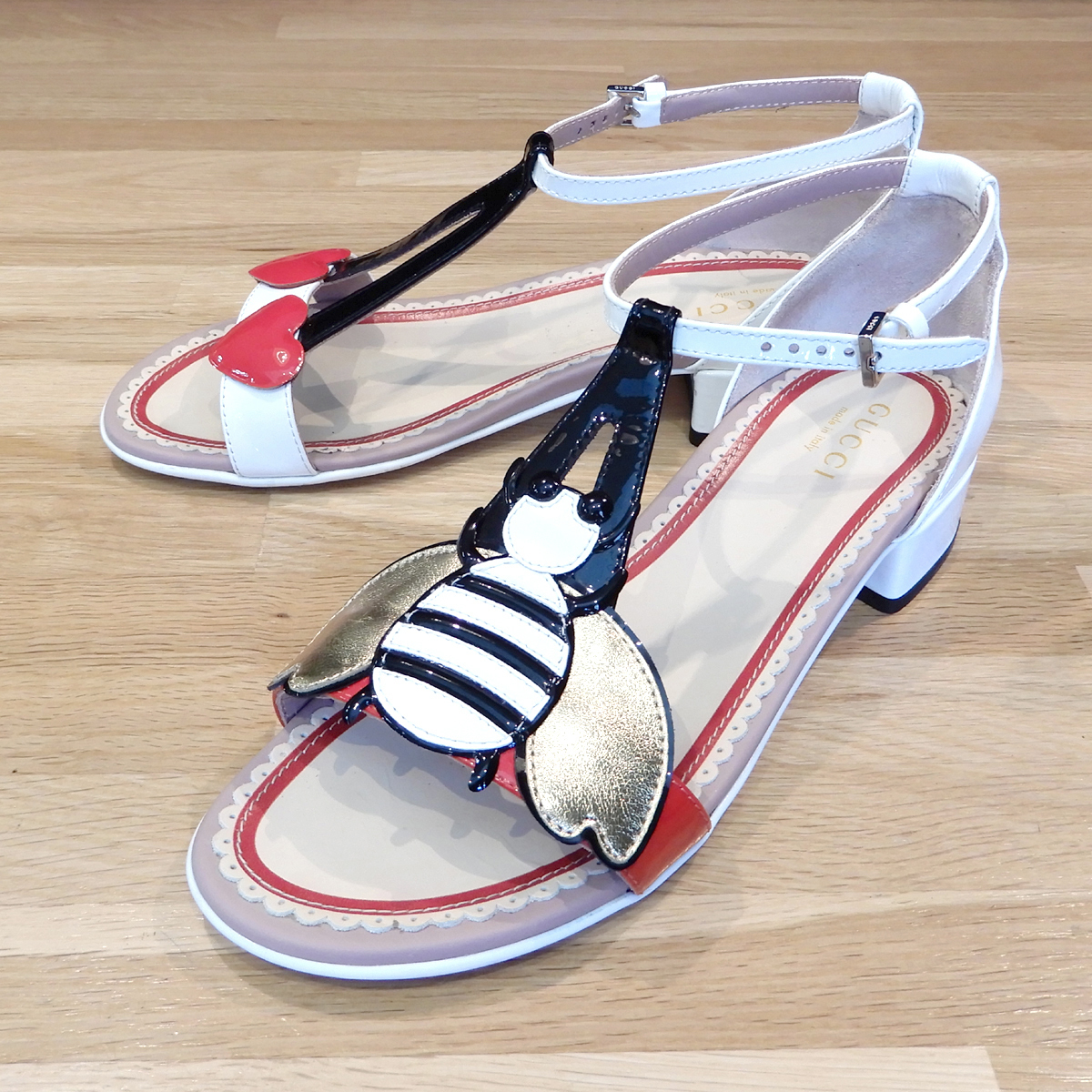 【超美品】 グッチ 20.0cm~21.0cm キッズ ストラップサンダル #33 レディース 靴 シューズ ミツバチ さくらんぼ 02286