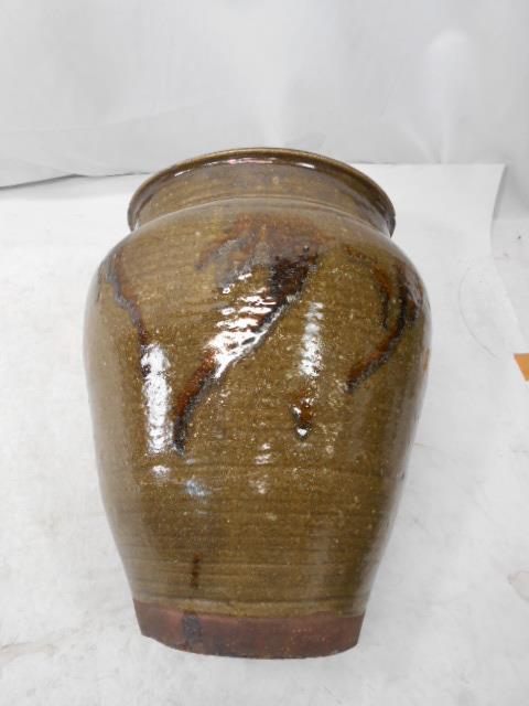 明治期 古越前焼広口壷 高さ38㎝ カサ立て 花入れ インテリア 古道具古民家古民芸です。