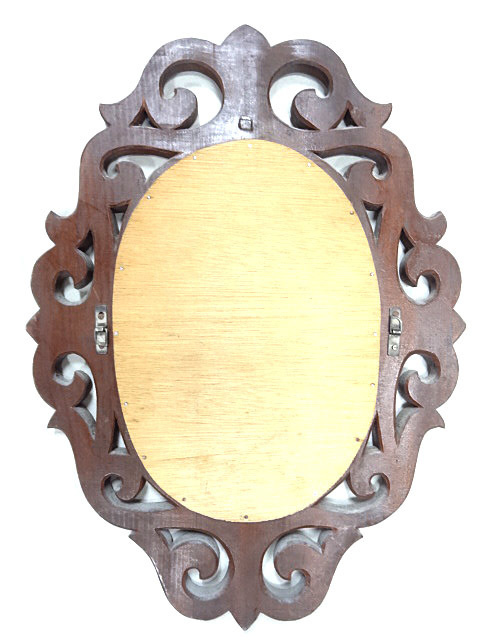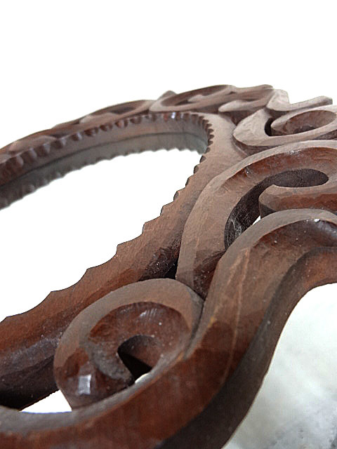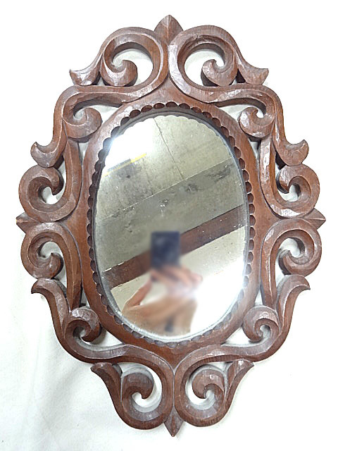 ビンテージ アンティーク 70S 木製 カービング 模様 ウッド フレーム ミラー 鏡 壁掛け インテリア ディスプレイ 木 店舗 雑貨 古道具 レア