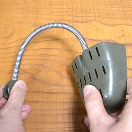 (2.)バネ部分を折り曲げ、つま先とは反対の部分をかかと部分に押し込みます。