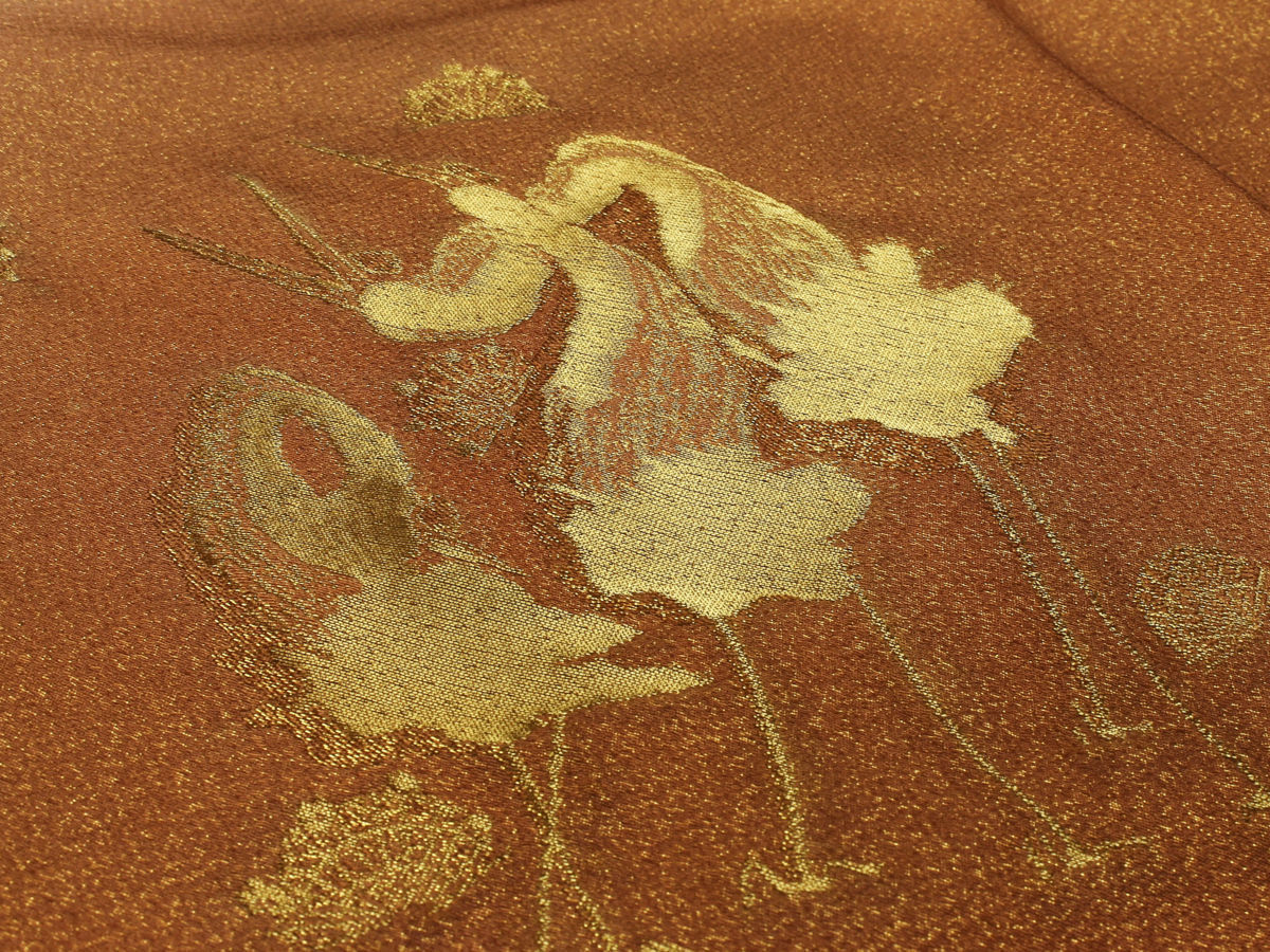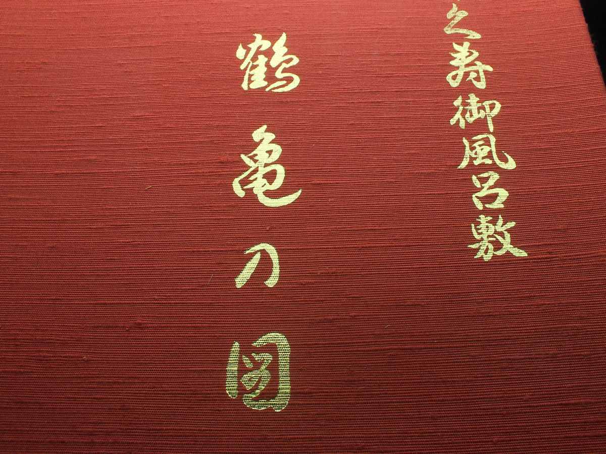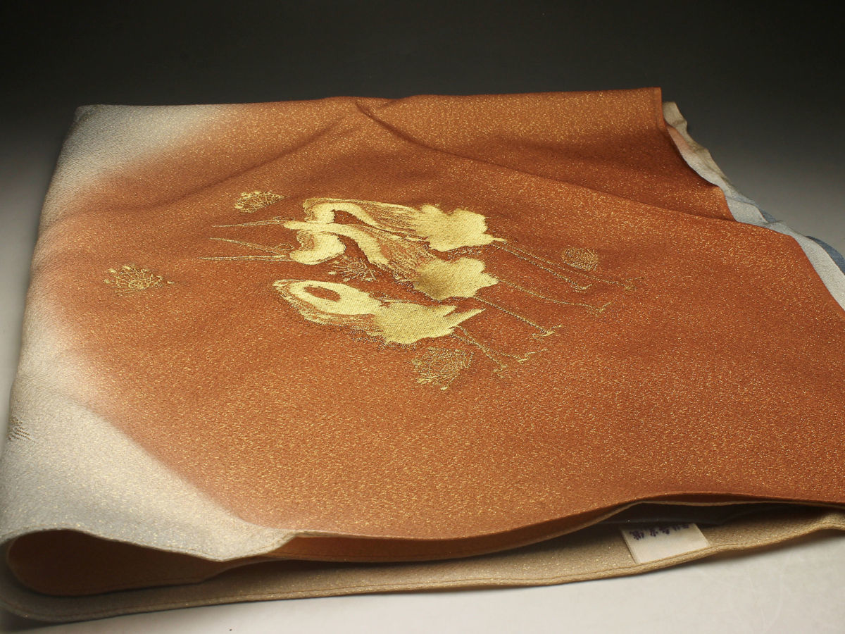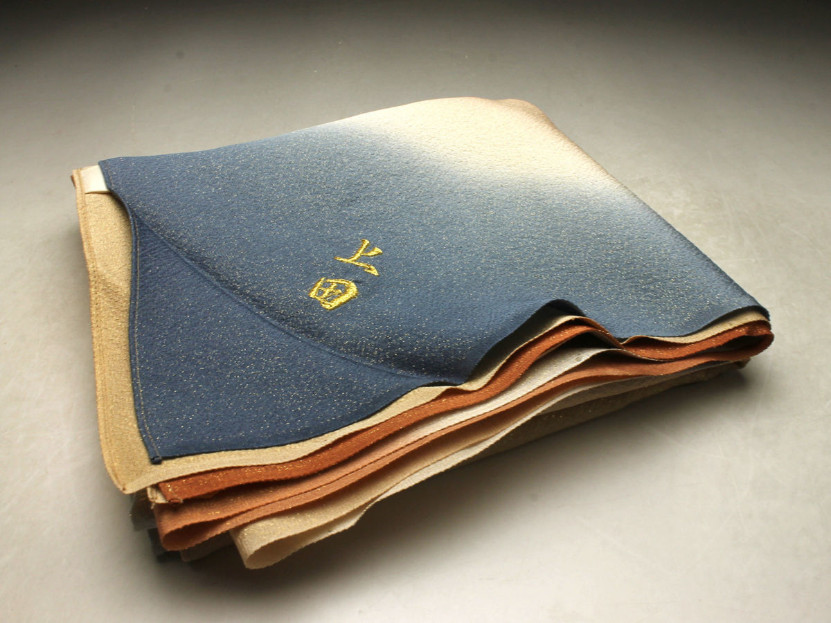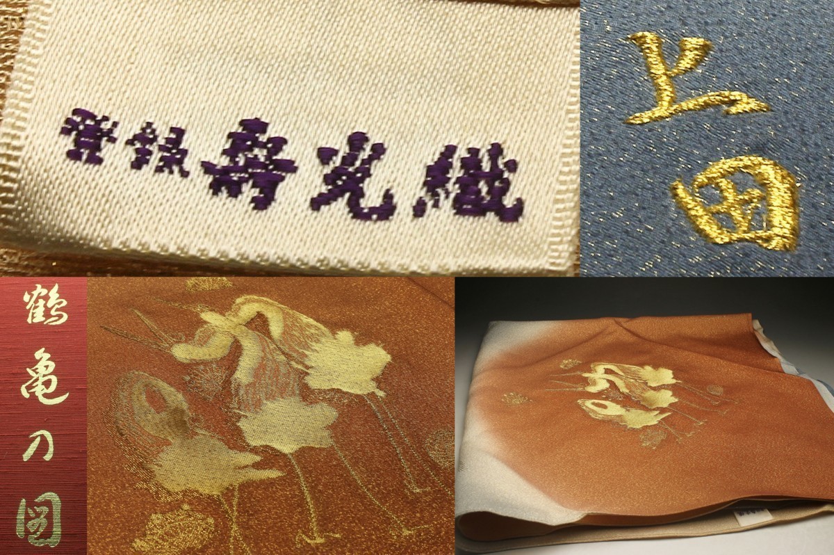 【余韻】 壽光織 上田 久寿 御風呂敷 鶴亀刀図★化粧箱 無傷美品<同梱可>