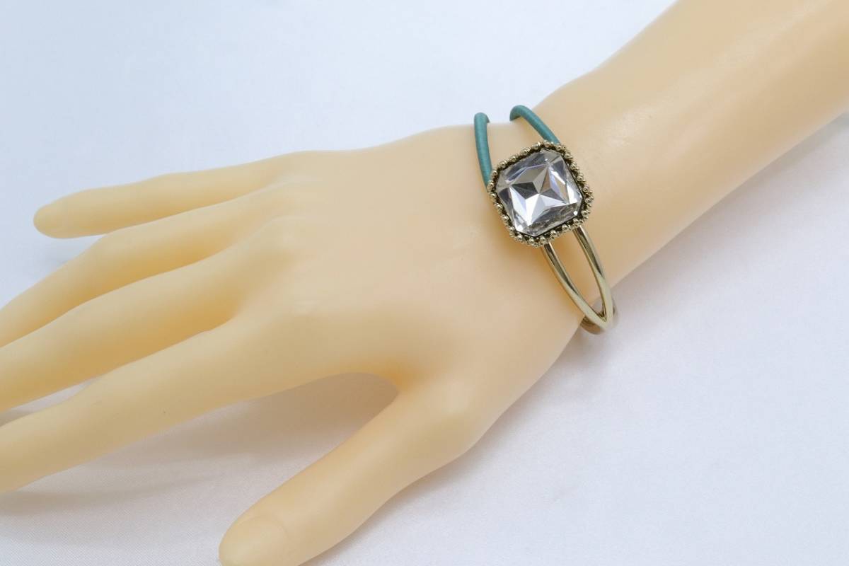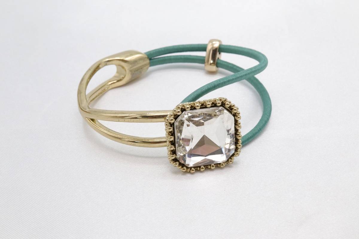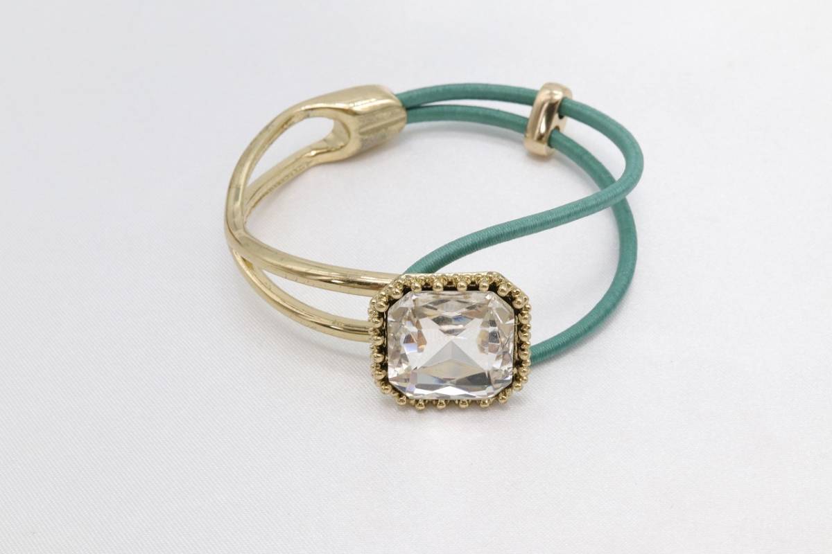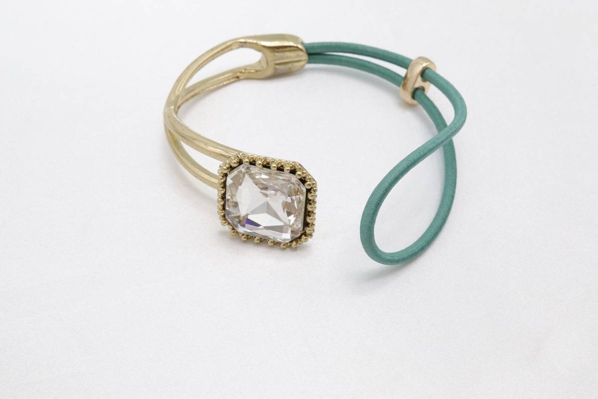 【KU90】ボリューム カット ストーン ハーフ メタル ゴム ブレスレット エメラルドグリーン 未使用保管品【送料全国一律198円】