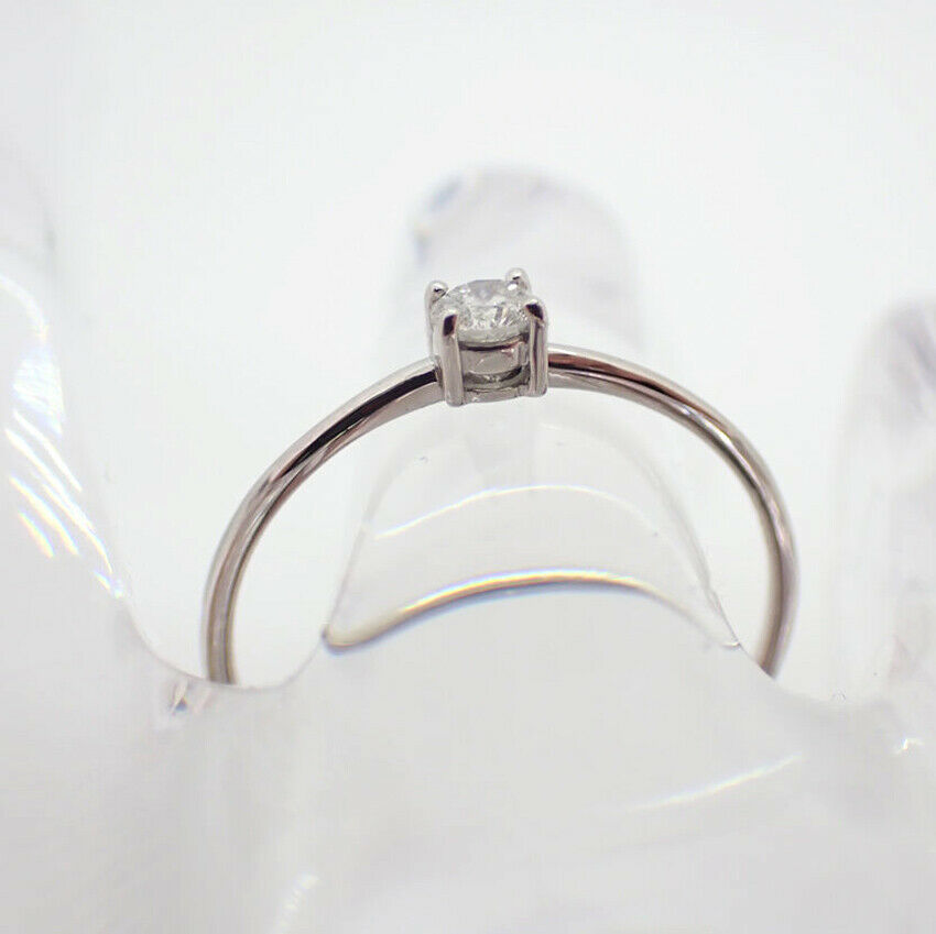 無色で透明度が高く輝きの良い高品質のダイヤモンドがセットされたシンプルなデザインです。