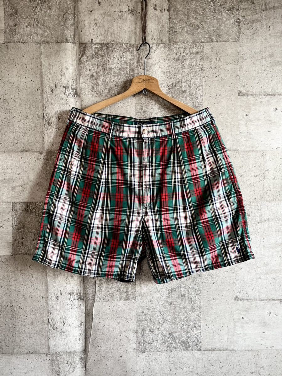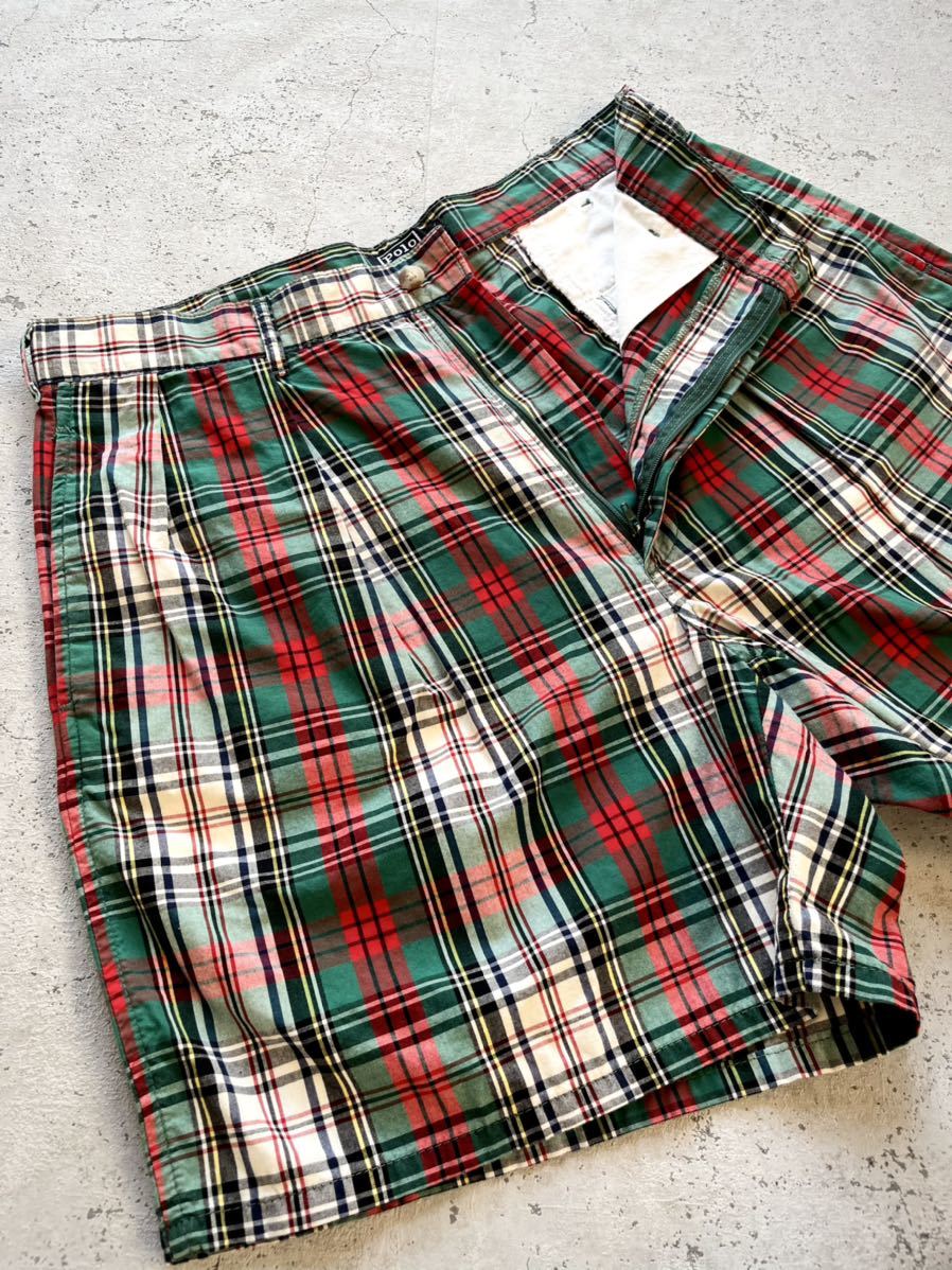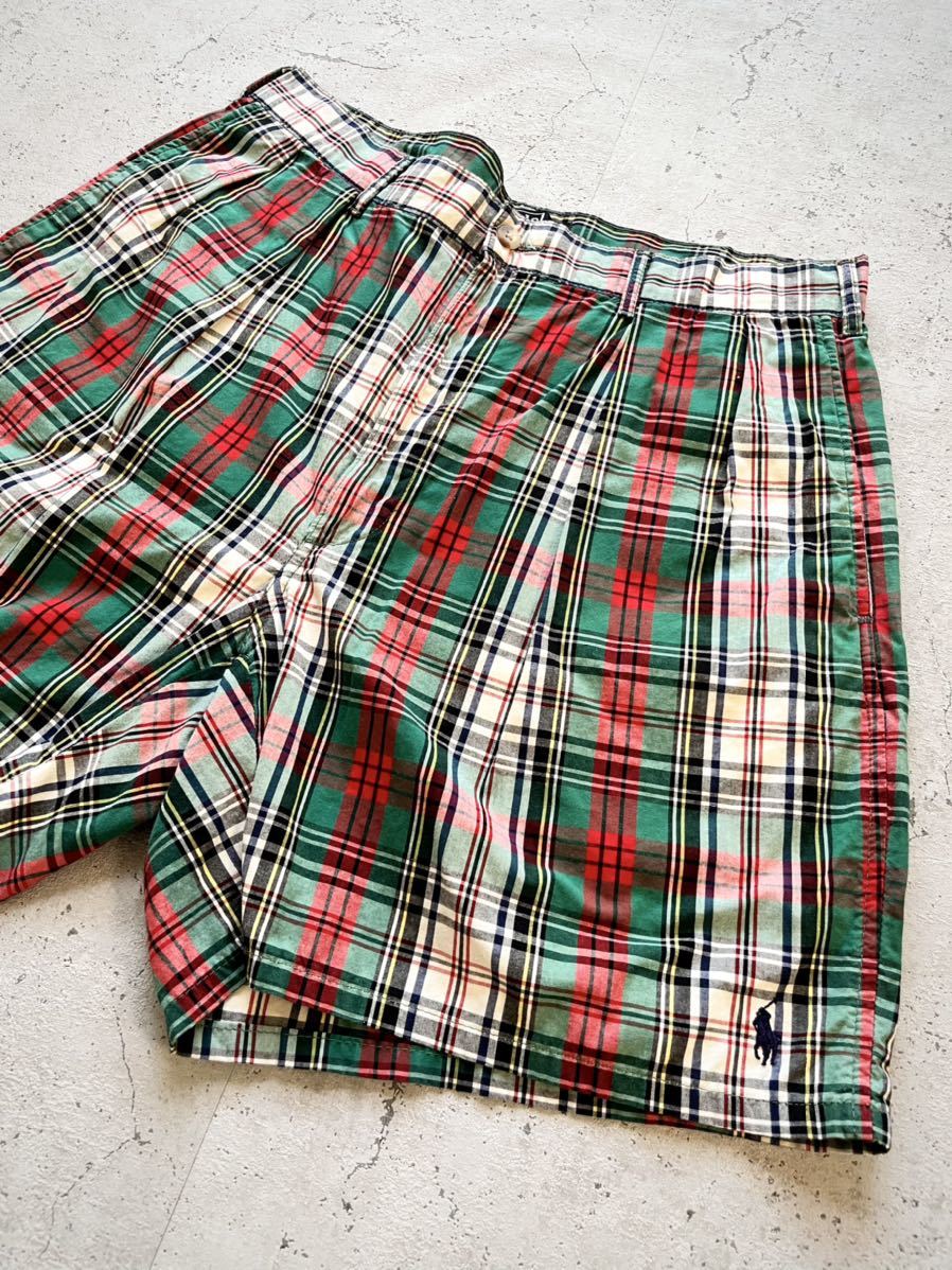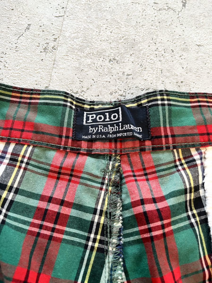 80s-90s MADE IN USA “ RALPH LAUREN ” MADRAS CHECK SHORT PANTS OLD VINTAGE 。