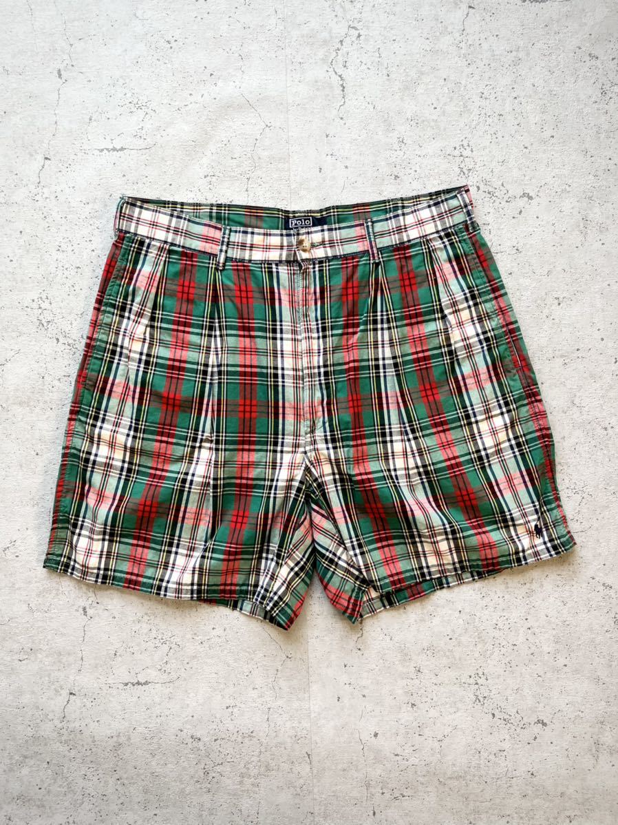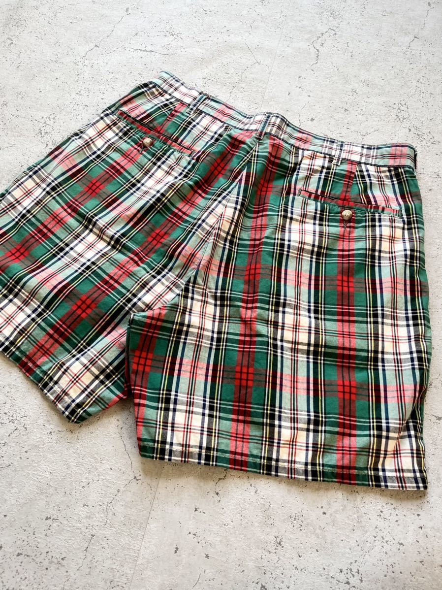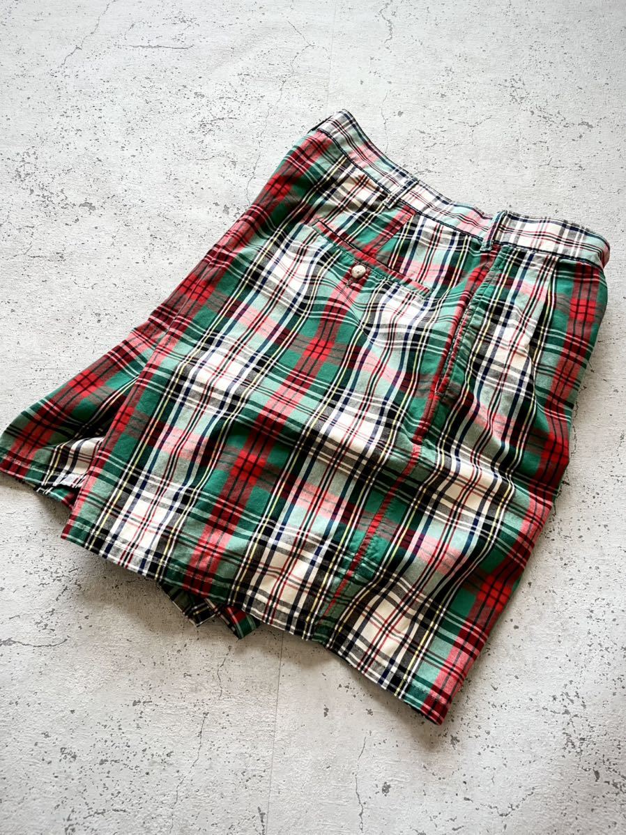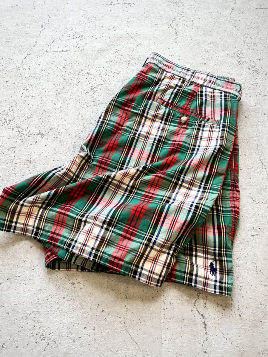 80s-90s MADE IN USA “ RALPH LAUREN ” MADRAS CHECK SHORT PANTS OLD VINTAGE 。