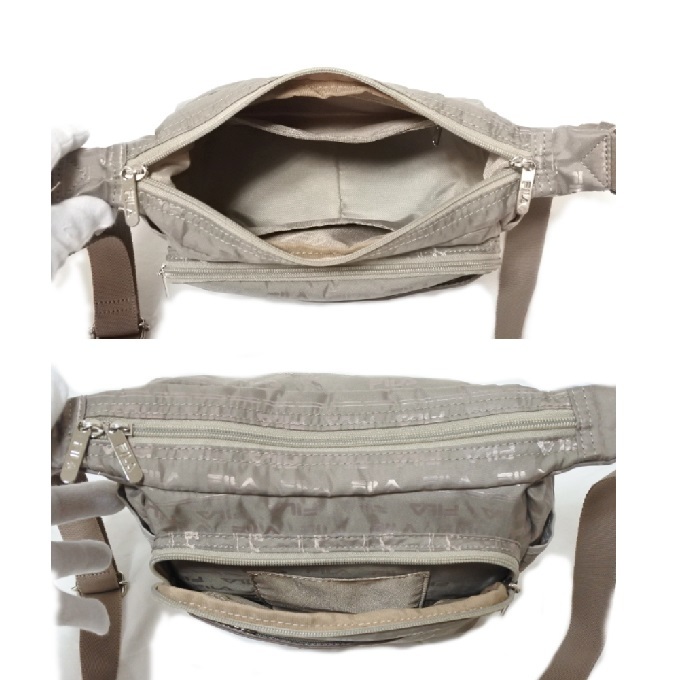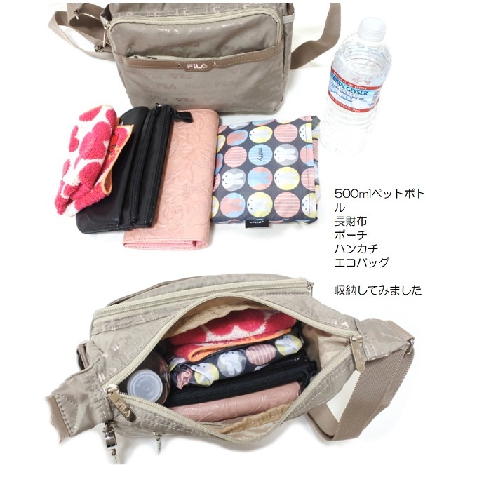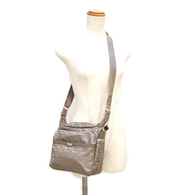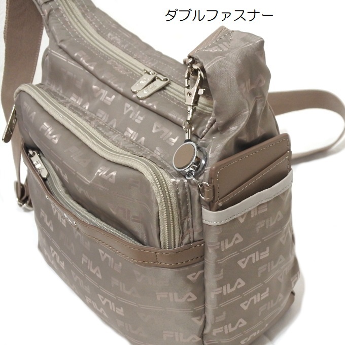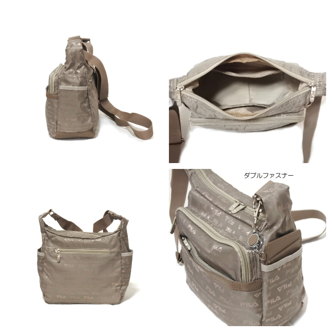 FILA[フィラ] ナイロンショルダーバッグ レディース  ベージュ フラワー 7693  軽い たくさん入る ポケット多い 斜め掛け