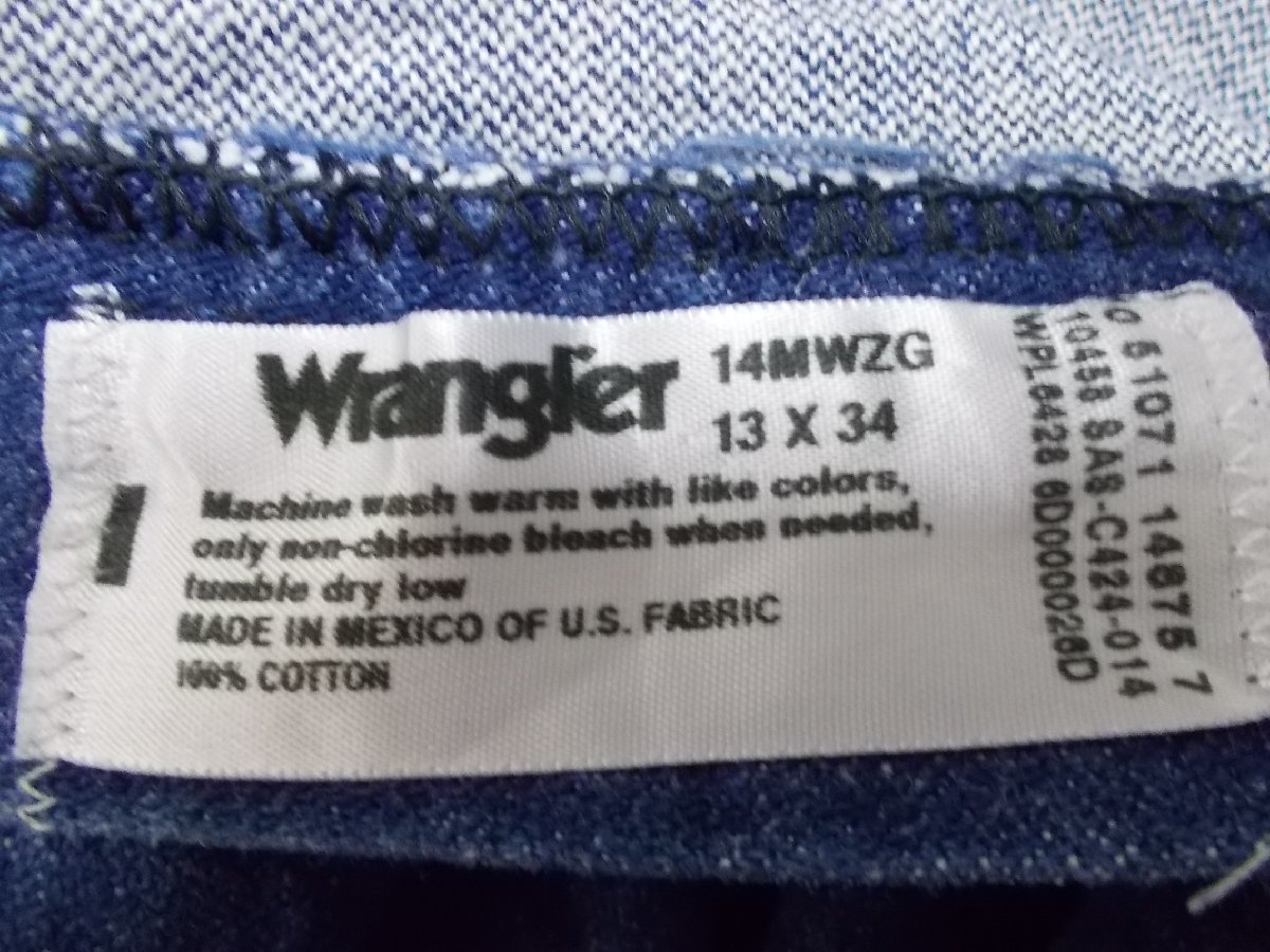 e165◆Wrangler 14MWZG パンツ◆ラングラー メキシコ製 00s インディゴブルー size13×34 コットン100% ハイライズ ストレート ジーンズ4C