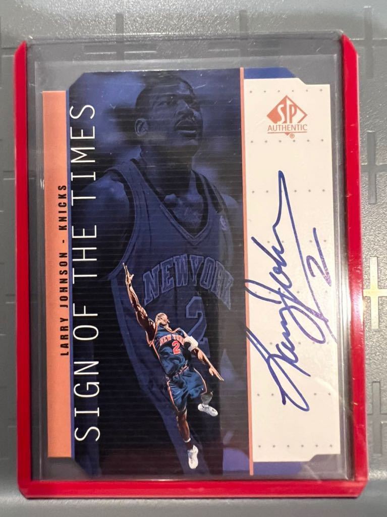 初期直書 Auto 1999 UD Sign Of The Times Larry Johnson ラリー・ジョンソン サイン NBA バスケ Panini ニックス Knicks 新人王 All-star
