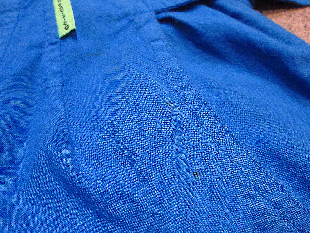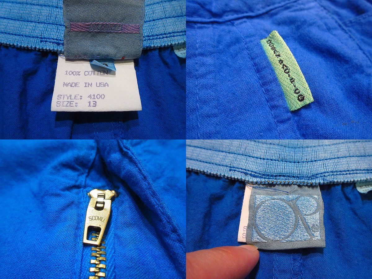 静岡県富士市にあるCOZY VINTAGEです。 海外から直接仕入れた古着、雑貨などを扱っています。 ホームページもございますので、そちらもチェックしてみてください。 https://www.used-cozy.com こちらの商品は佐川急便元払い60サイズです。 ◆サイズ◆ 表記・・・13 ウエスト・・・約82cm わたり幅・・・約38cm 裾幅・・・約37.5cm 股上・・・約38.5cm 股下・・・約15cm 着丈・・・約50.5cm (計測箇所によって多少異なりますのでだいたいの目安としてお考えください。) ◆状態◆ ところどころに保管時の細かい汚れがあります。 その他には、特に目立ったダメージや汚れはありません。 ダメージ、汚れが気になる方、神経質の方はご遠慮下さい。 ◆商品詳細◆ MADE IN USAです。 素材は、コットン100%です。 色は、青です。 両サイドにアジャスターが付いています。 バックにゴムが入っています。 スリータックで、裾はダブル仕上げです。 タグに1990年のコピーライトが入っています。 ジッパーは、SCOVILLジッパーです。 希少なデッドストックで、太めのシルエットが素敵なショーツです。 220801i4-w-sht-w32 ◆ビンテージ古着、レトロな雑貨などの卸もお気軽にご相談ください。 ◆info@used-cozy.comまでお気軽にメールくださいね!! |
