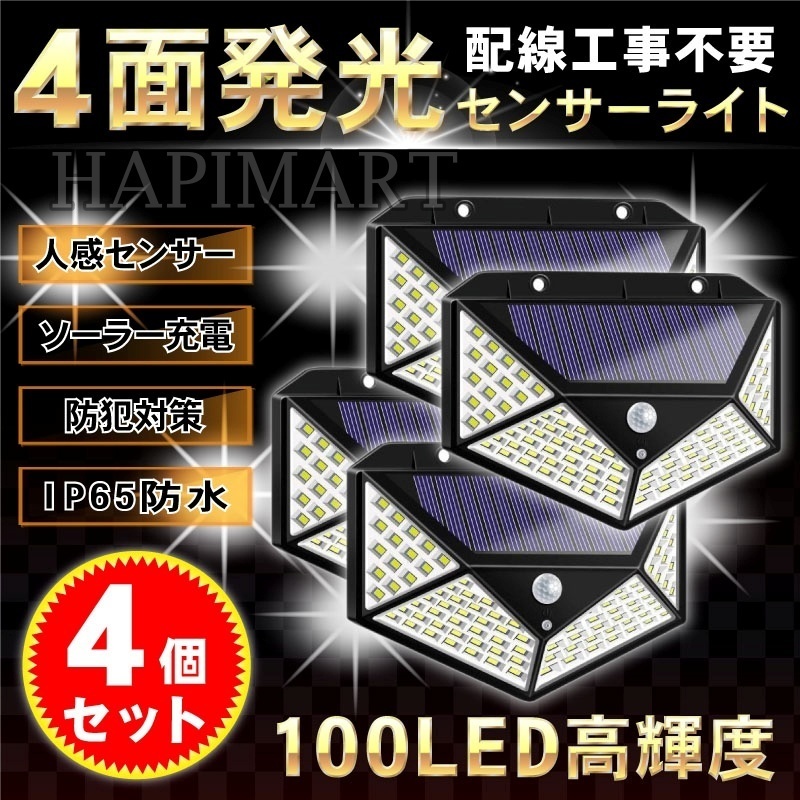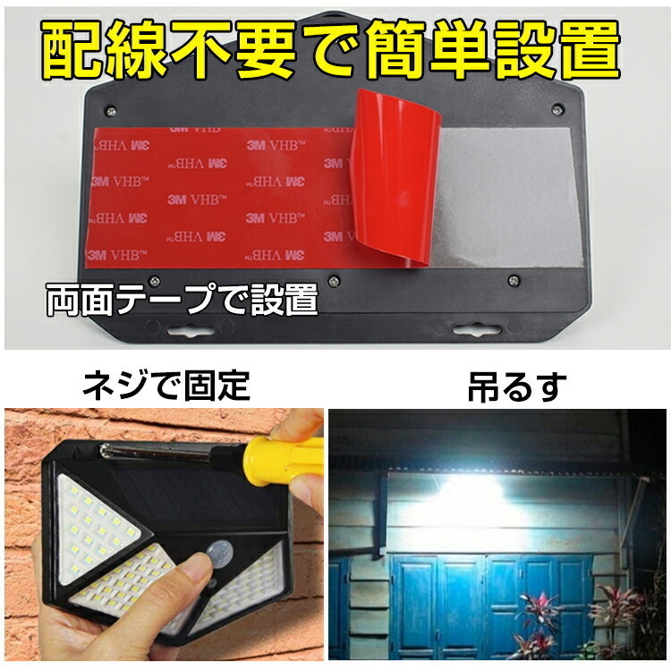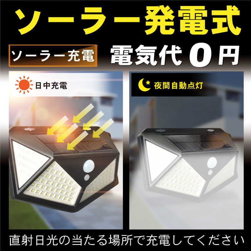 100個LEDライトを搭載し、他社ソーラーライトより明るい。