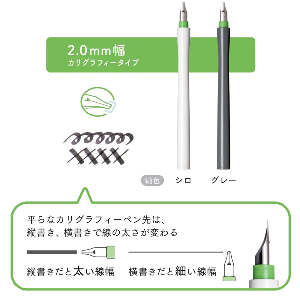 インクの消費が多い太い字幅〈2.0mm幅と筆文字〉のために インクを保持するリザーバーパーツを新たに開発し、十分な 筆記距離を確保しました。