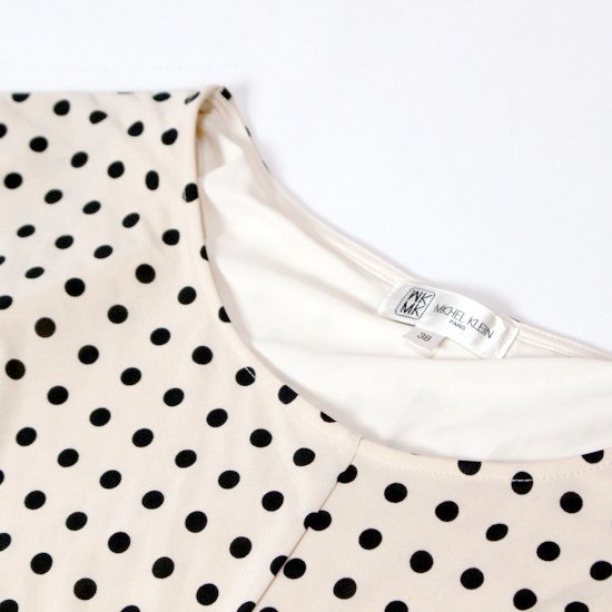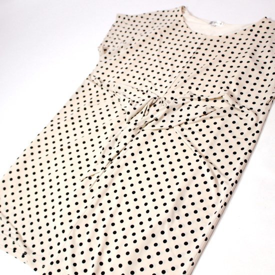 ☆☆ 美品 MICHEL KLEIN ミッシェルクラン ☆☆ 可愛いリボン・ドット柄 ストレッチ ワンピース 38号 春 夏 22C09
