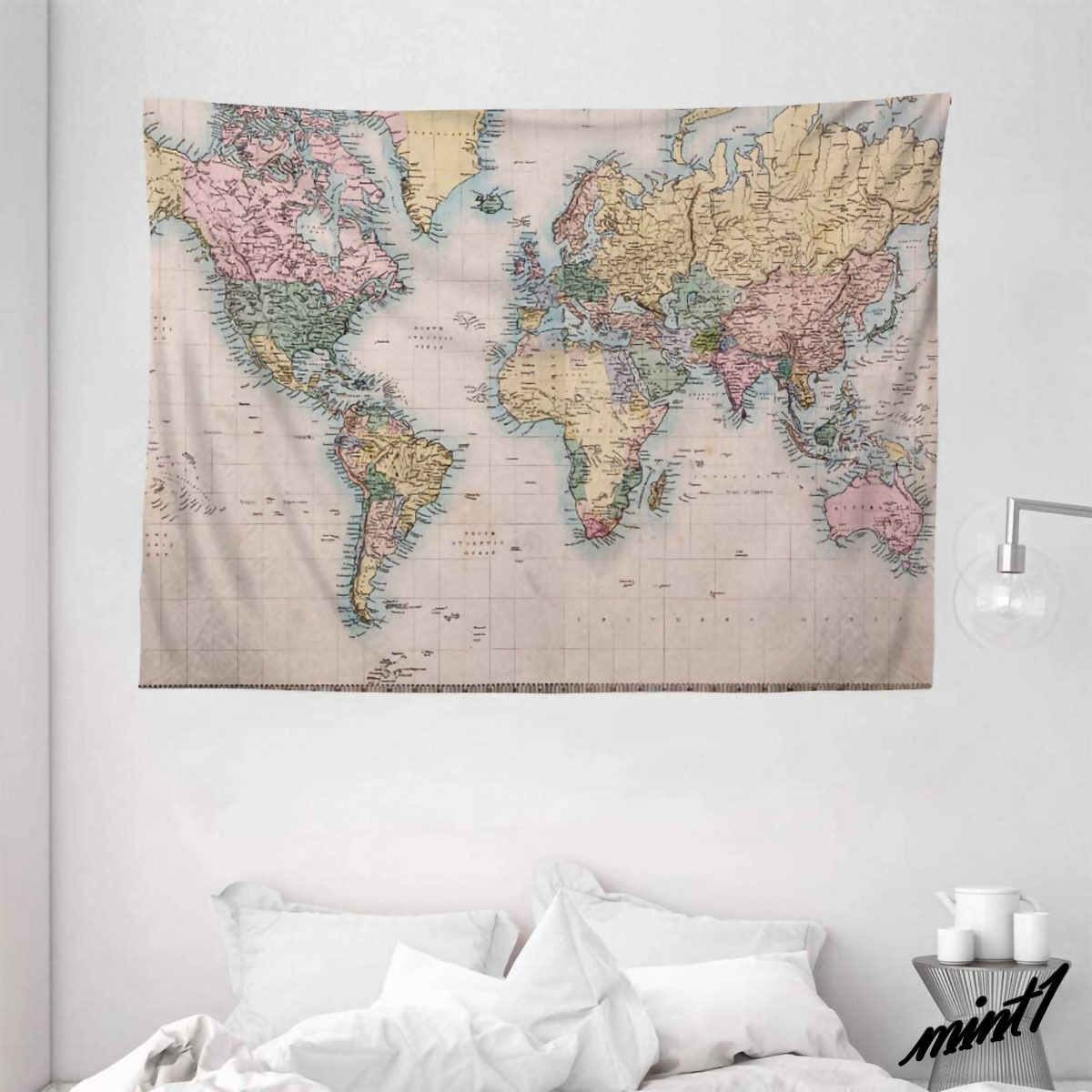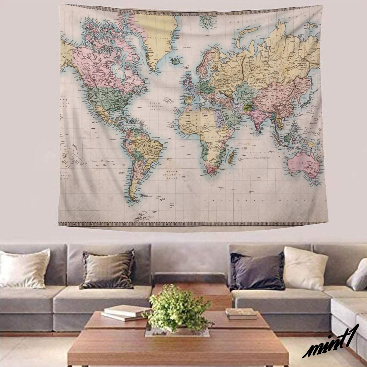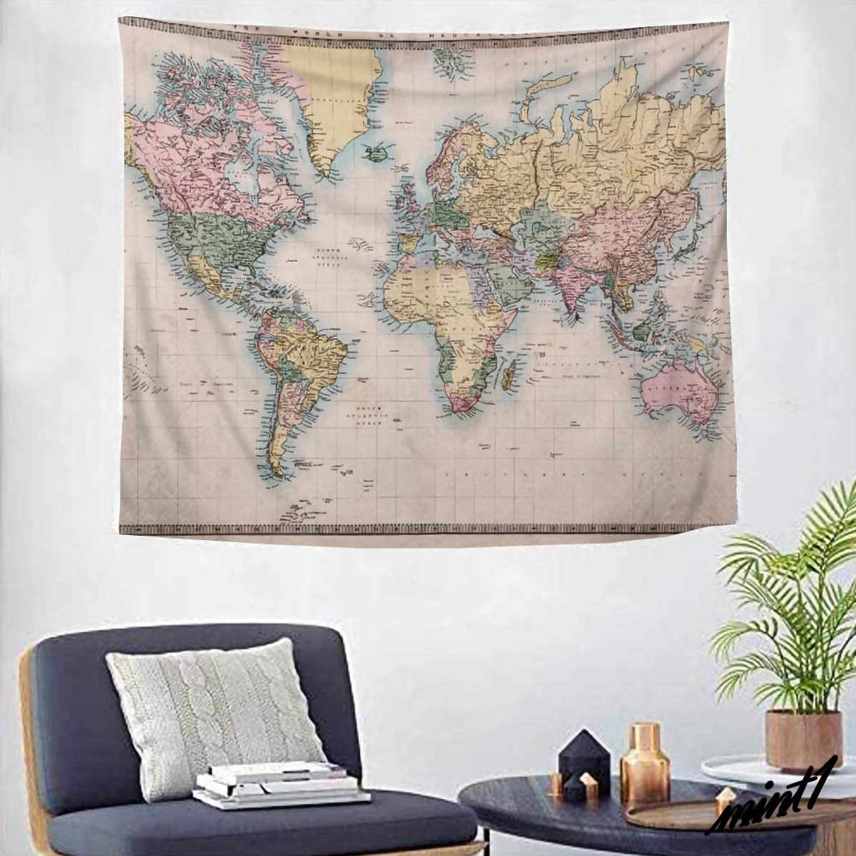 アンティーク調ワールドマップタペストリー。