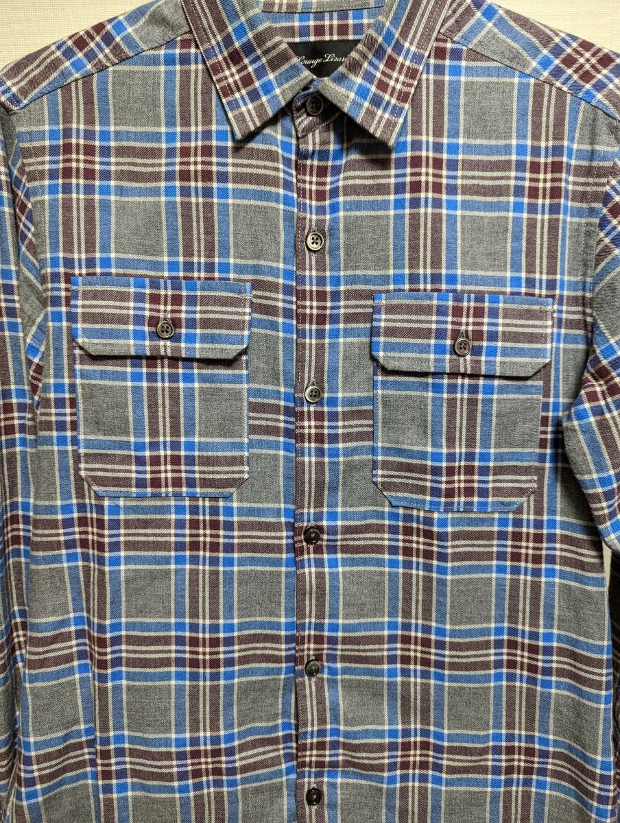 こちらは灰青茶のチェックのネルシャツになります。配色がよく合わせやすいデザインになっていますので、これからの季節に重宝すると思います。