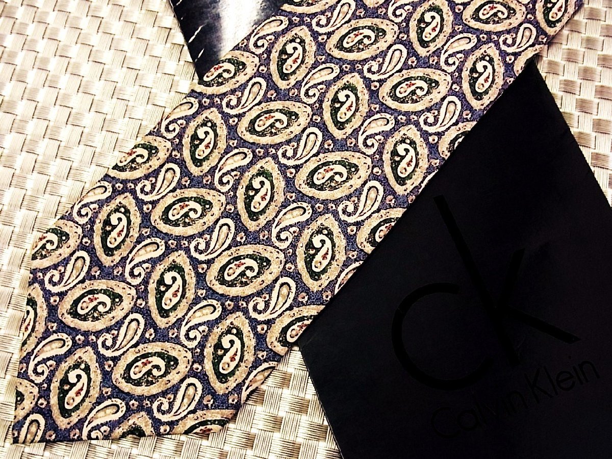 ♪29015C♪良品【刺繍 ペイズリー 柄】カルバン・クライン【Calvin Klein】ネクタイ