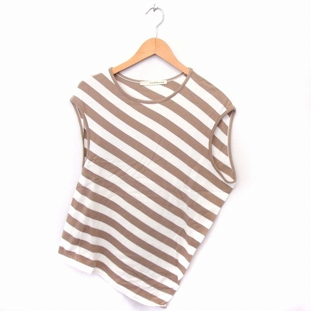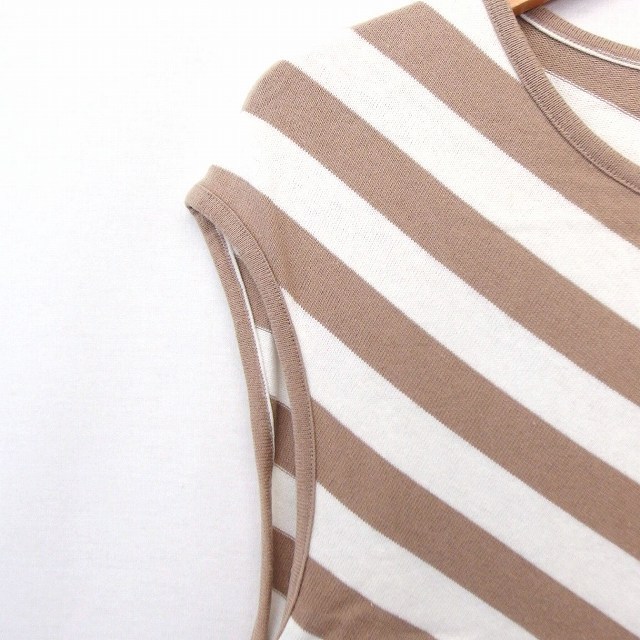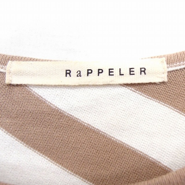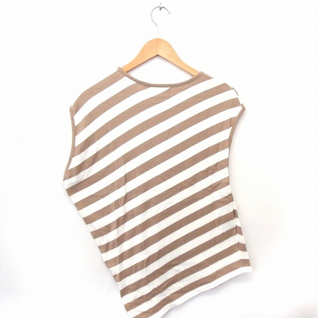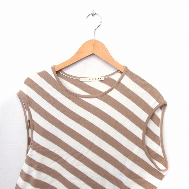 RaPPELER カットソー ボーダー アシンメトリー 変形 丸首 ノースリーブ コットン 綿 F ブラウン 茶 ホワイト 白 /FT25 レディース