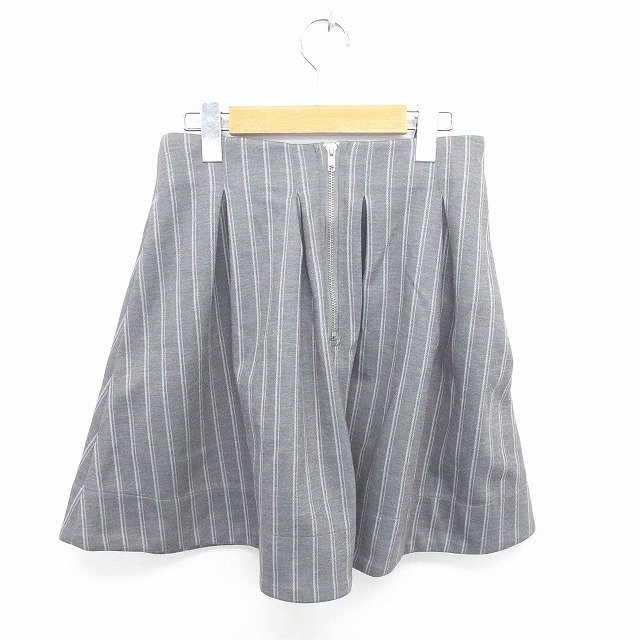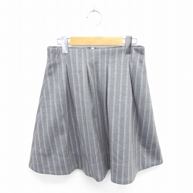 ティティー&コー TITTY&CO スカート フレア ひざ丈 ストライプ バックジップ 厚手 M グレー 灰 /TT21 レディース