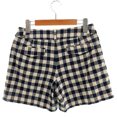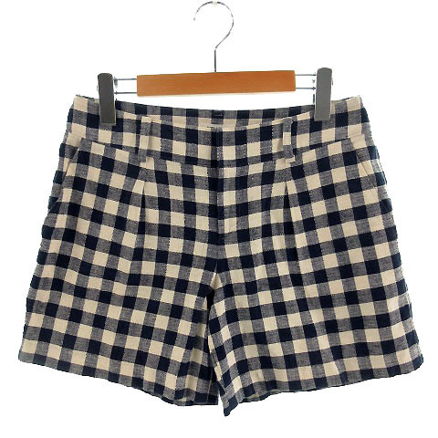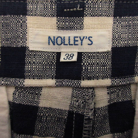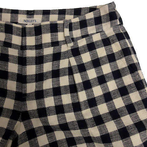 ノーリーズ Nolley's パンツ ショートパンツ チェック リネン混 ベージュ ネイビー 紺 38 レディース