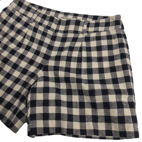 【仕様】パンツ ショートパンツ チェック リネン混 フロントはファスナー留め 両サイドにポケットあり タック入り