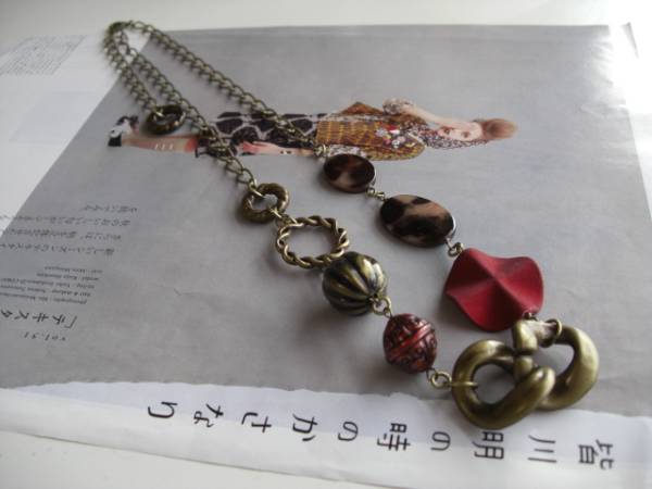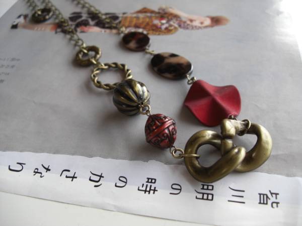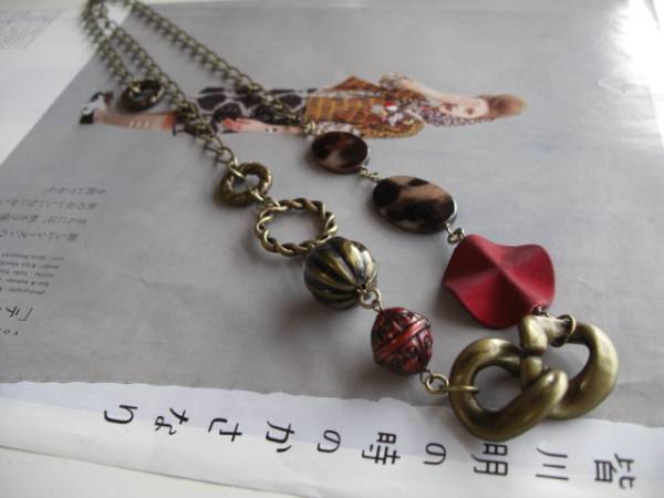 私的・クローゼット・・シリーズです♪夜会の時間・・シックな赤と豹柄のネックレスです♪個性的な素材を集めてひっそり華やかな表情です♪豹柄のシェルビーズは25×18ミリ位、デザインリングは26×22ミリ位、深い赤のデザインビーズやデザインチェーンを合わせました♪長さは全長65センチ位で調節自由です♪お揃いのブレスレットも出品しています♪シンプルで飽きのこないいつまでも着けられるデザインを考えて作りました!ハンドメイドをご理解頂いてノークレーム、ノーリターンでお願いします
