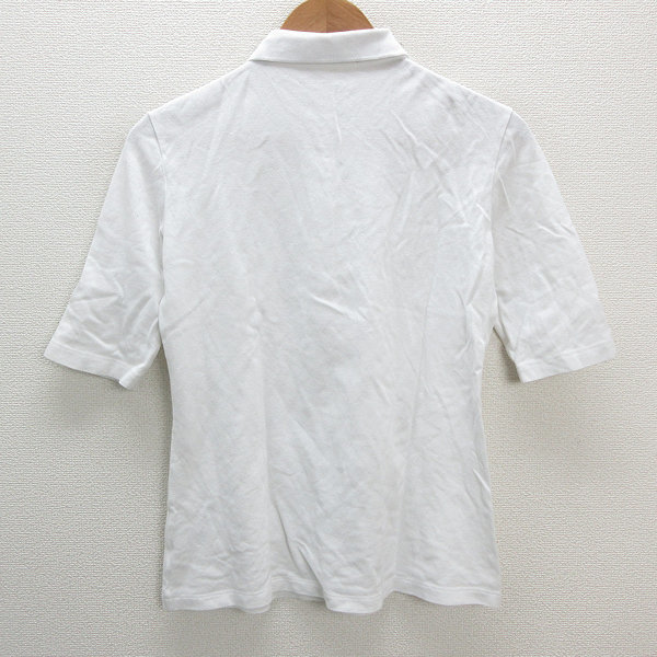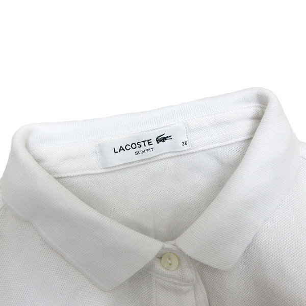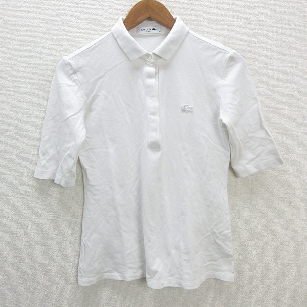 s■日本製■ラコステ/LACOSTE 白ワニ刺繍 鹿の子地 ストレッチポロシャツ【38】白/LADIES/44【中古】