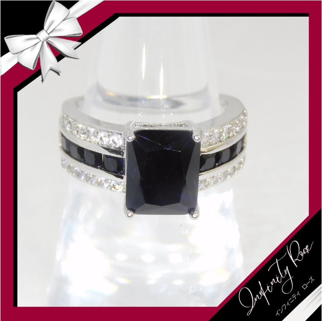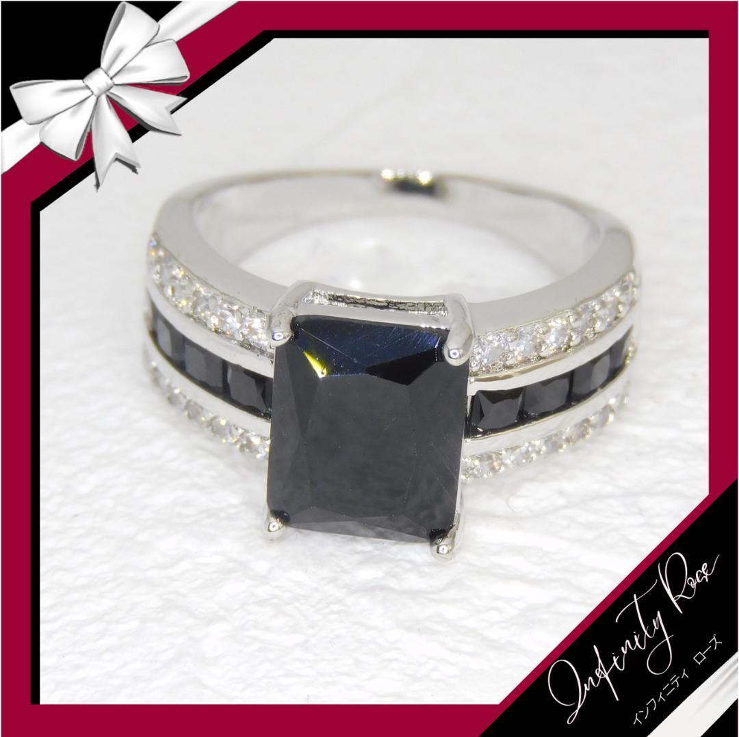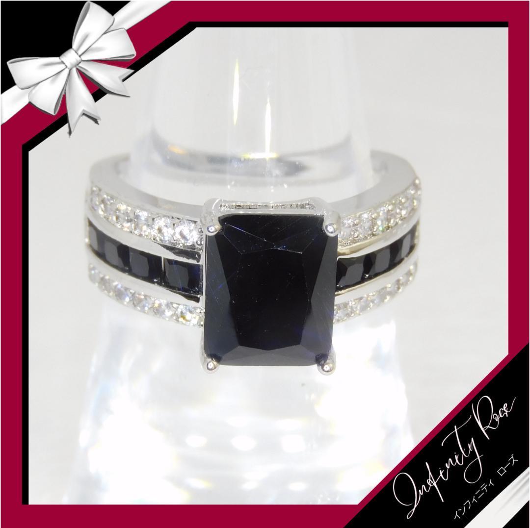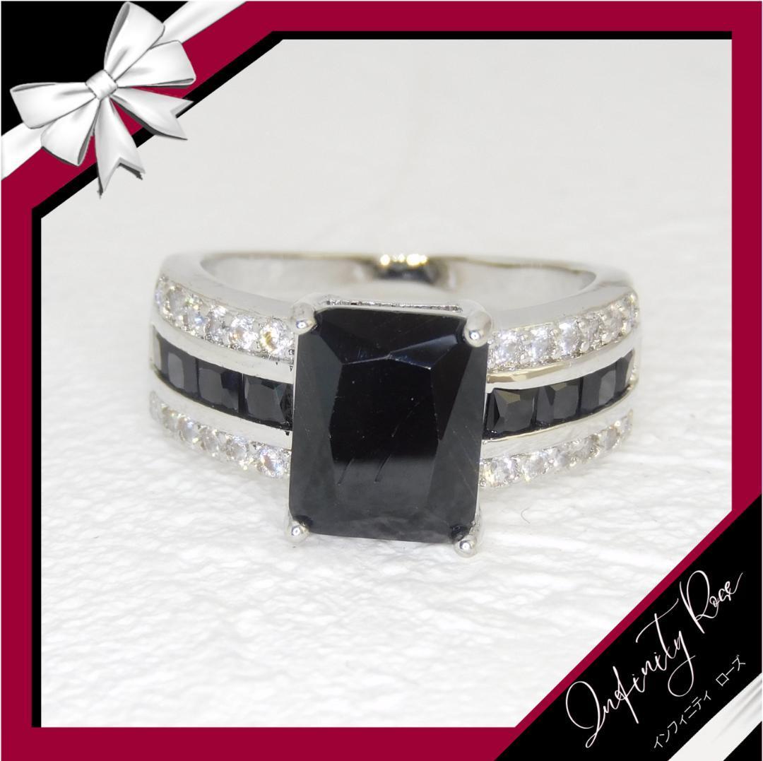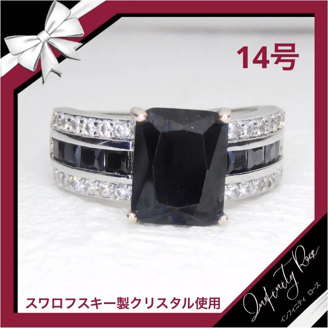 (R047SK)14号 ブラック豪華煌めく華やかゴージャスワイドリング 指輪 スワロフスキー製クリスタル使用