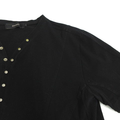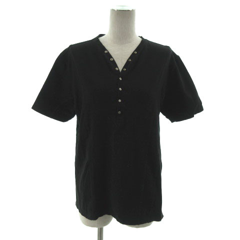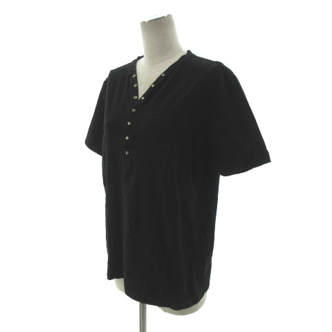 アルチザン ARTISAN カットソー ヘンリーネック 半袖 日本製 ブラック 黒 L レディース