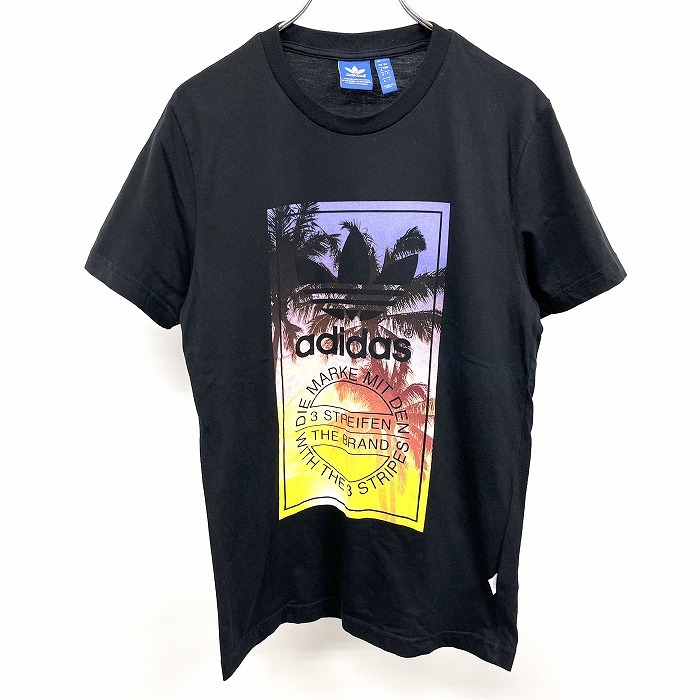 | 商品タイトル | adidas TREFOIL アディダス トレフォイル M レディース Tシャツ ヤシの木 『3 STREIFEN THE BRAND DIE MARKE MIT DEN』 半袖 綿100% 黒 |