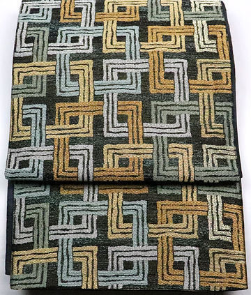 | 聚楽謹製 西陣織袋帯 モール織 黒モール織地幾何模様 新品 仕立て上がり | |