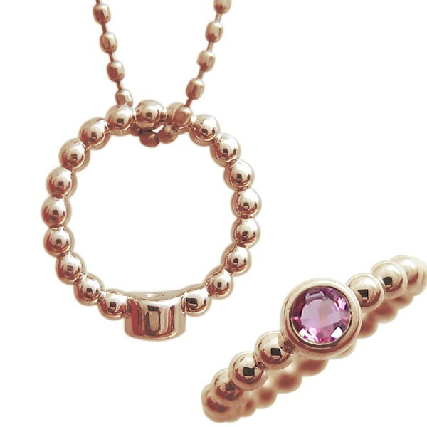 10月誕生石ピンクトルマリンを使用した、18金製のベビーリング(ネックレス)です。