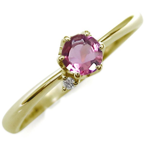 10月誕生石ピンクトルマリンを一粒使用した10金製の、シンプルで上品なデザインのリング(指輪)です。