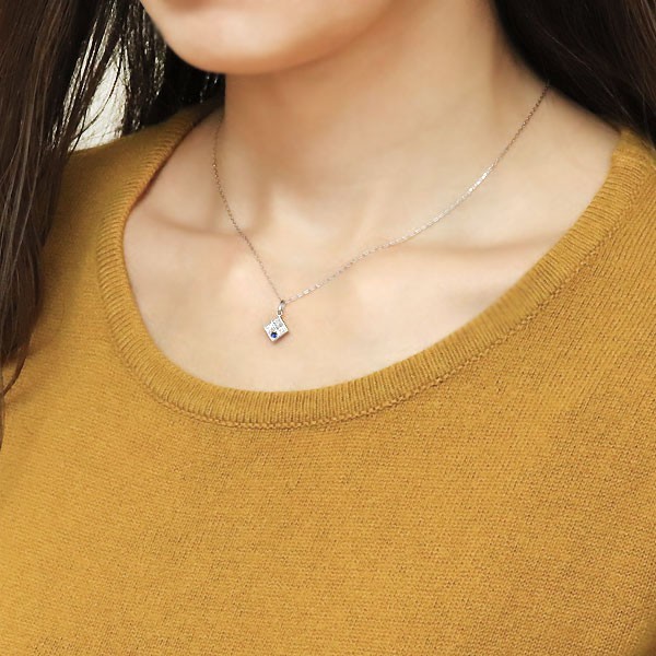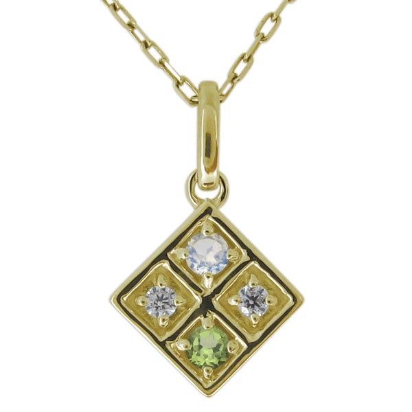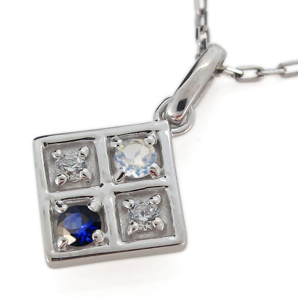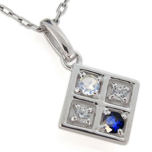 6月誕生石ロイヤルブルームーンストーンを使用した18金製の、スクエアデザインレディースネックレス(ペンダント)です。