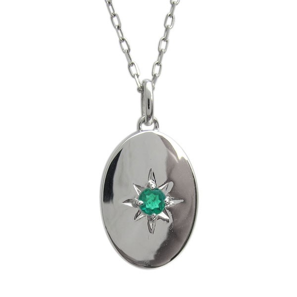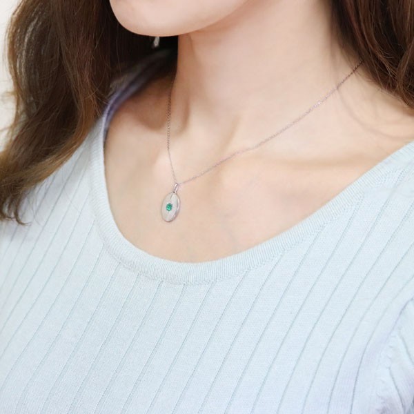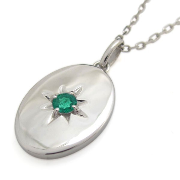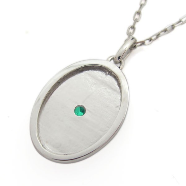 5月誕生石エメラルドを使用したプラチナ製の、オーバル型デザインのネックレス・ペンダントです。