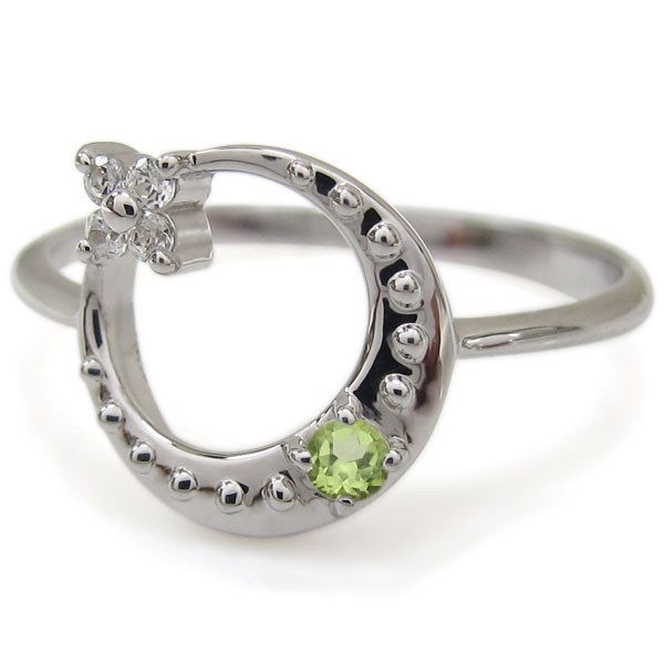 8月誕生石ペリドットを使用した、18金製の三日月(ムーン)星(スター)モチーフリング(指輪)です。