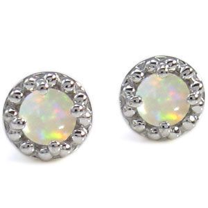 プラチナ オパール ピアス ミル打ち 一粒 ピアス クリスマス ポイント消化