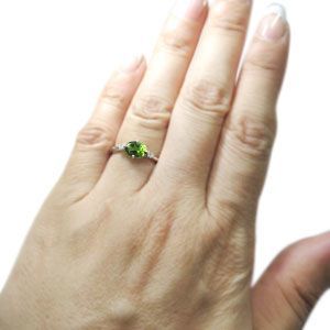■石名:主石 ペリドット(オーバル 約 5.0mm×7.0mm/天然石使用)脇石 ダイヤモンド(2石合計で約 0.029ct/天然石使用)