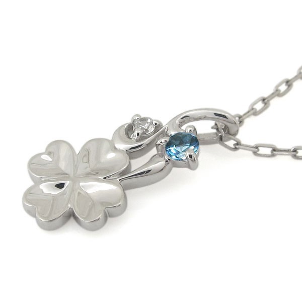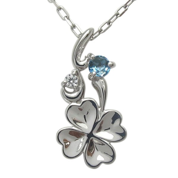 11月誕生石ブルートパーズを一粒使用した、シルバー製のクローバー(四つ葉)モチーフネックレスペンダントです。