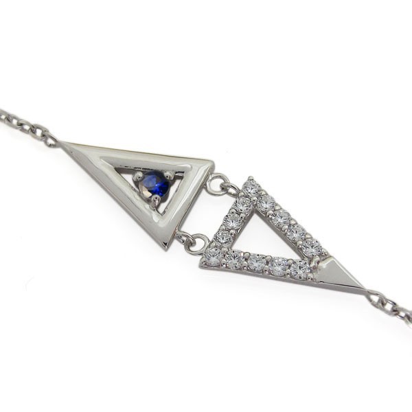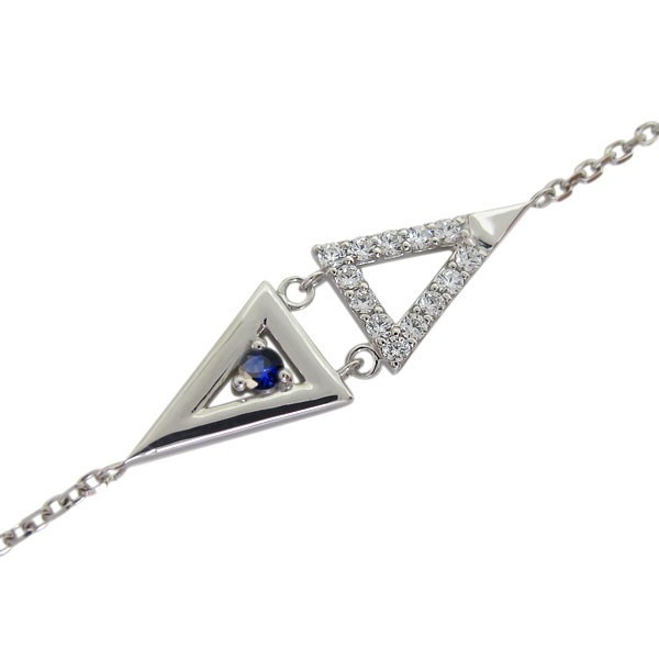 9月誕生石サファイアを使用したプラチナ製の、トライアングルデザインのブレスレットです。