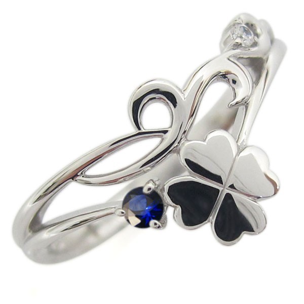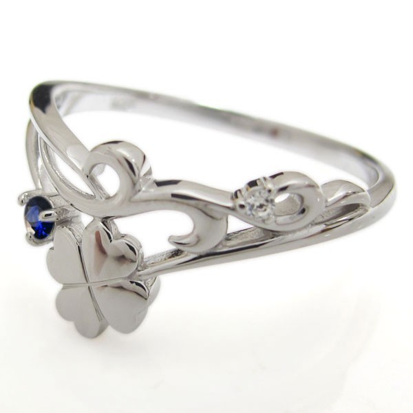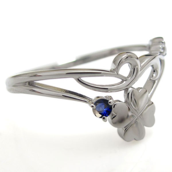 9月誕生石サファイアを使用したプラチナ製の、クローバー&唐草モチーフV字デザインリング(指輪)です。