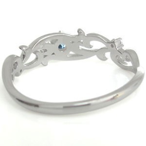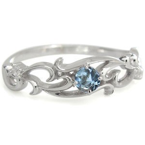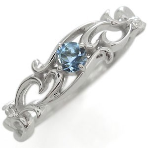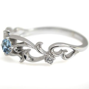 3月誕生石アクアマリンを一粒使用した、プラチナ製のアラベスクデザインリング(指輪)です。