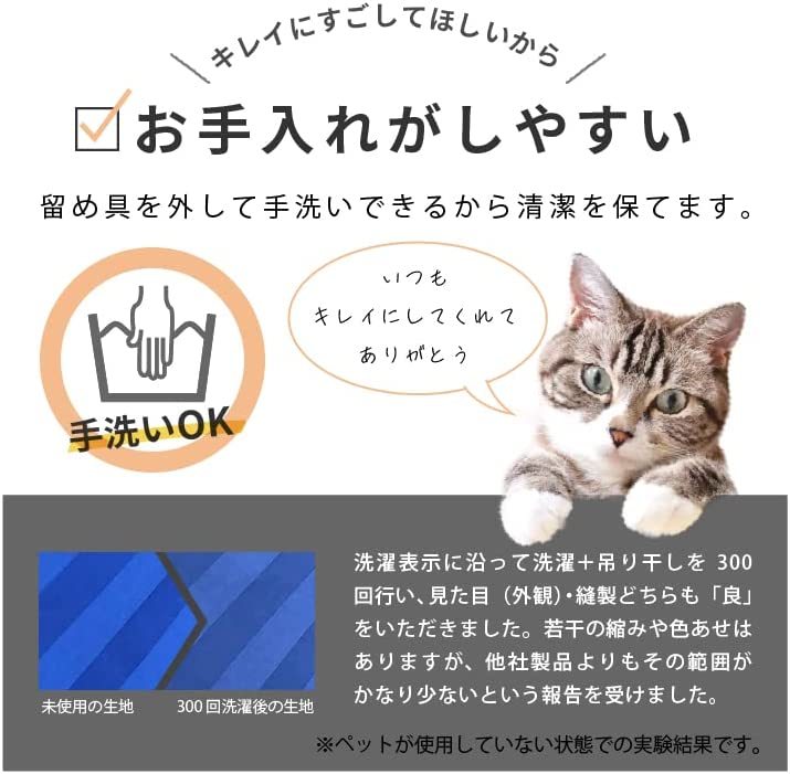 • 猫ちゃんもゆったりくつろげる大きめのハンモックです。まったりしたり、お昼寝りたり、猫ちゃんの癒しのスペースに。こだわりの生地を使用し、滑らかでサラサラした気持ちいい肌触りのハンモックです。汚しても、金具をはずして丸洗いできるので安心です。同じ生地を使用した、人用の布団カバーもあるのでペットとお揃いにすることができます♪