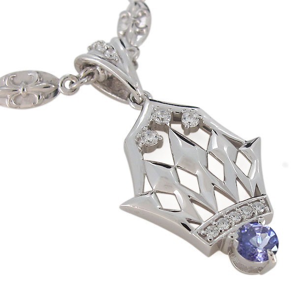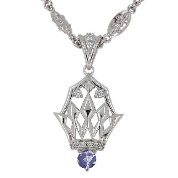 12月誕生石タンザナイトを使用したシルバー製の、王冠(クラウン)モチーフメンズネックレス(ペンダント)です。