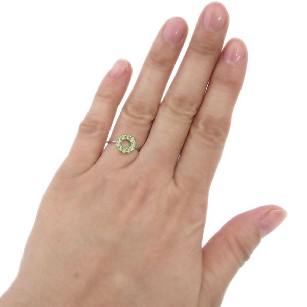 8月誕生石ペリドットを使用した、プラチナ製のエタニティリング(指輪)です。