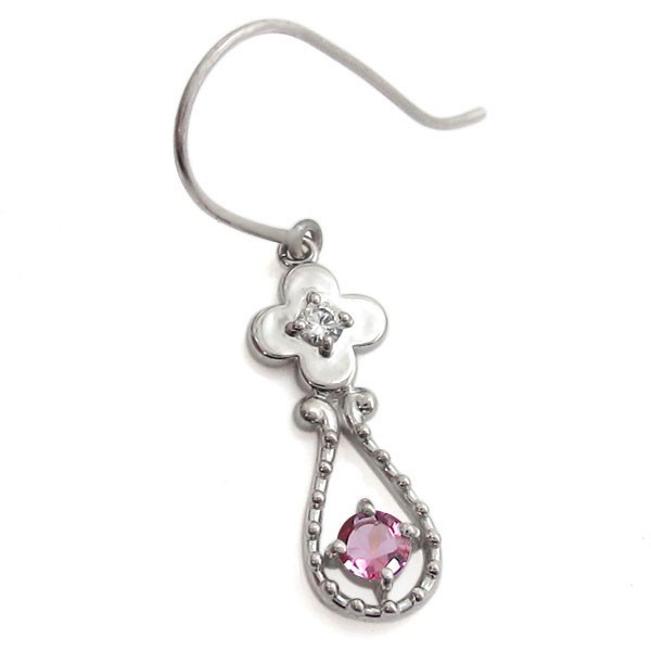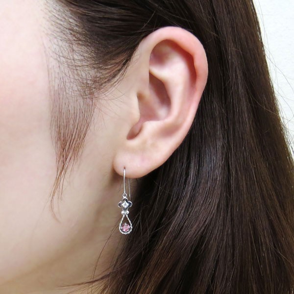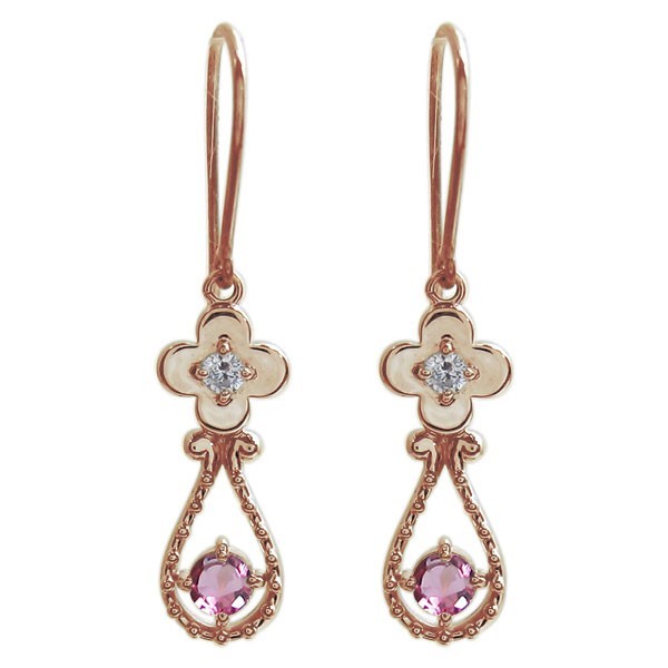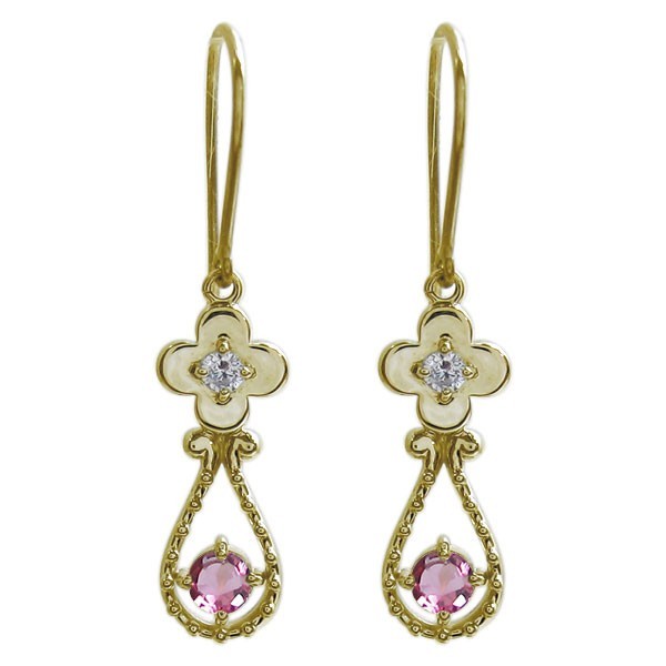 18金 フラワーピアス ピンクトルマリン 花 フックピアス ミル打ち