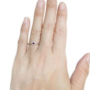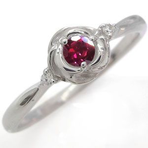■石名:主石 ルビー(約 3.0mm/天然石使用)脇石:ダイヤモンド(2石合計 約 0.02ct/天然石使用)