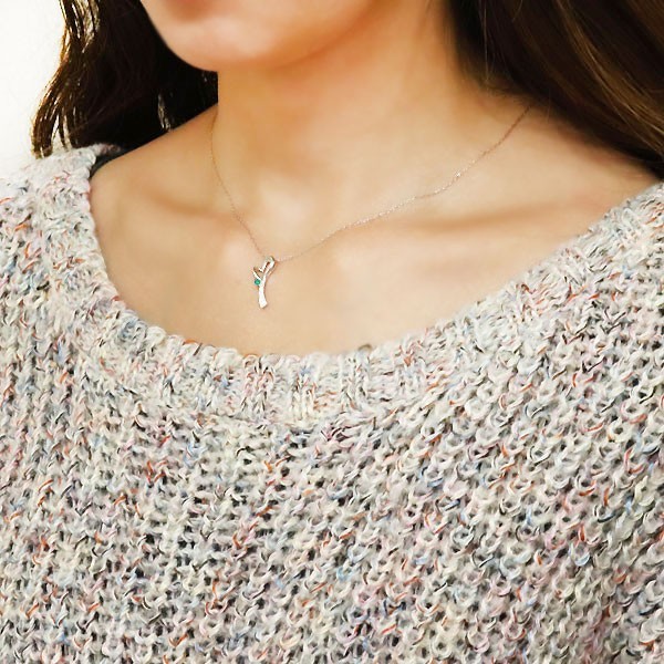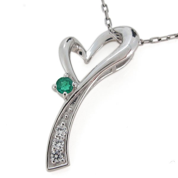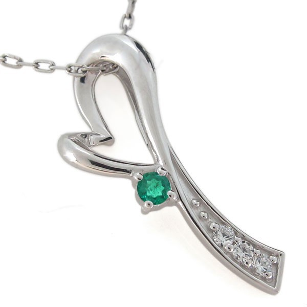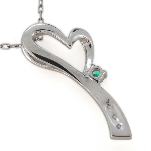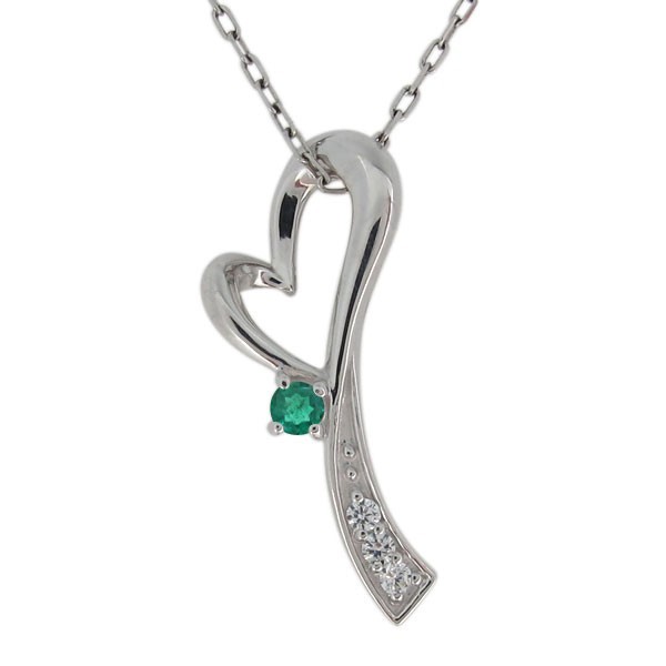 5月誕生石エメラルドを使用したプラチナ製の、ハートモチーフレディースネックレス(ペンダント)です。