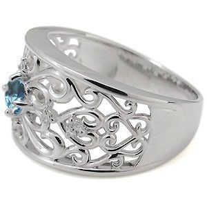 11月誕生石大粒ブルートパーズを一粒使用した、唐草デザインの18金製のリング(指輪)です。