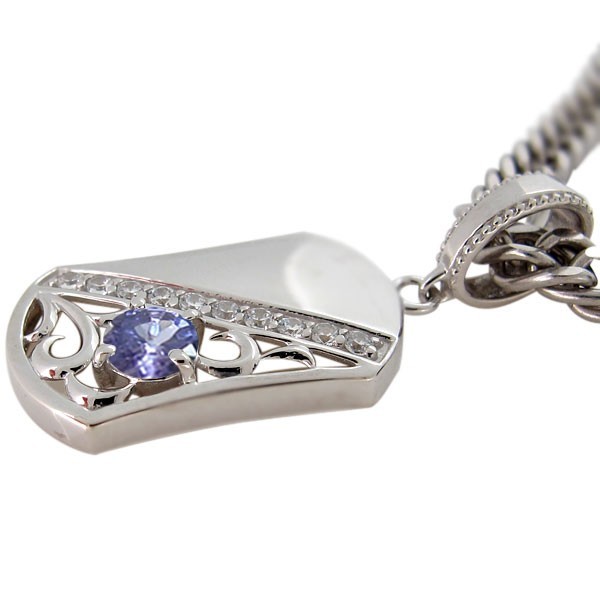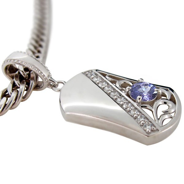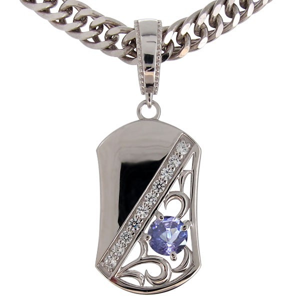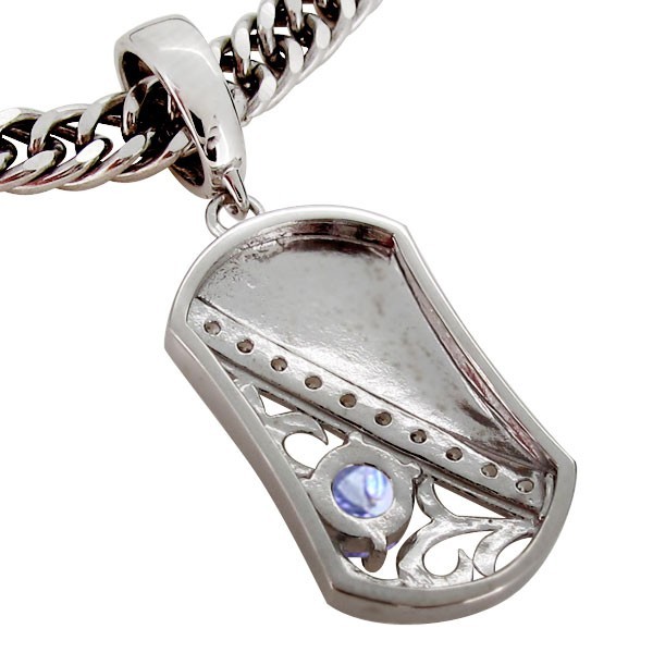 12月誕生石タンザナイトを使用したシルバー製の、唐草プレートデザインメンズネックレス(ペンダント)です。