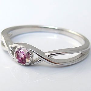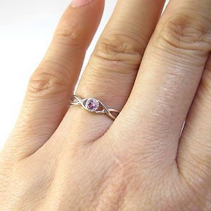 9月誕生石ピンクサファイアを一粒使用したシンプルデザインの10金製リングです。